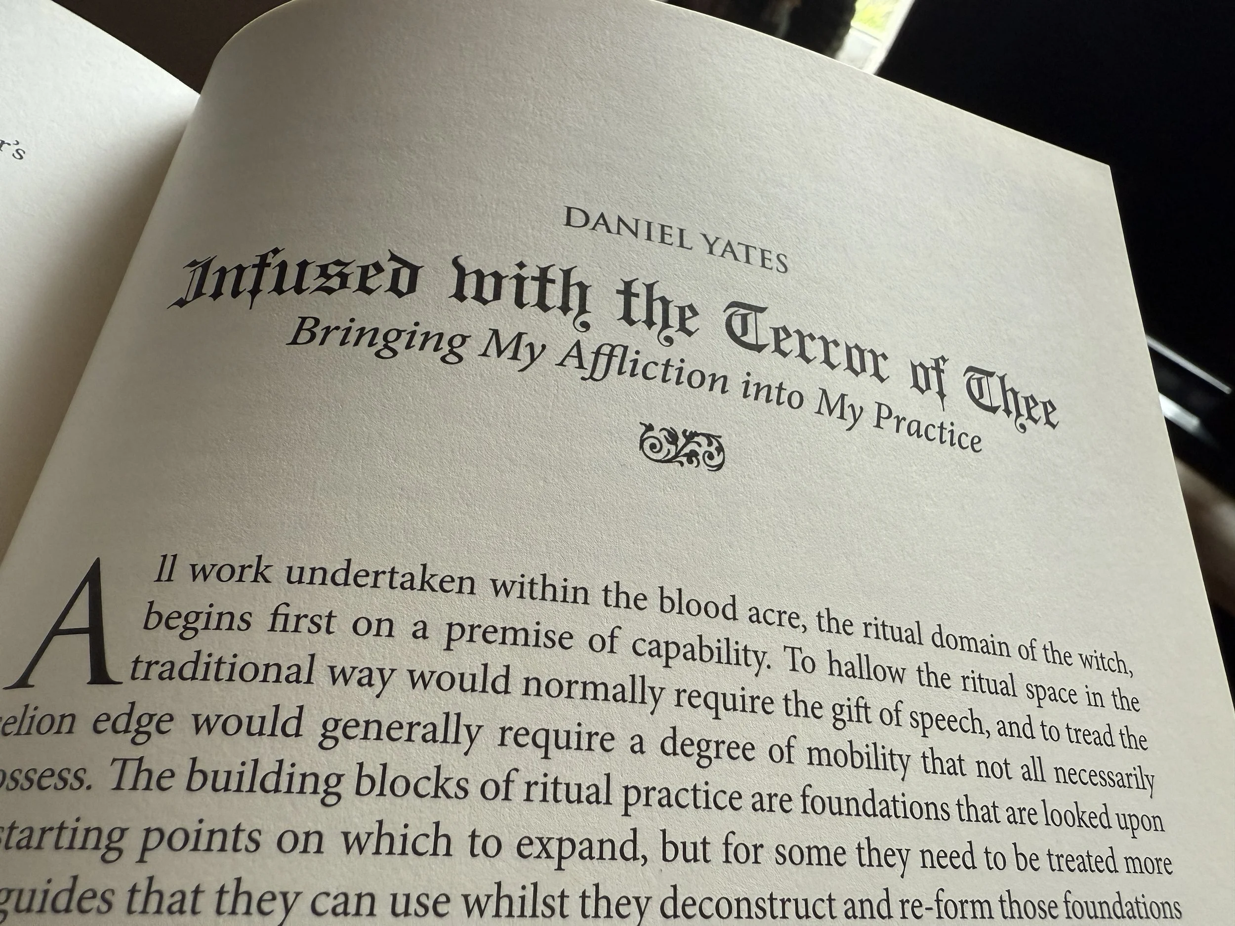 What I posited was that it was an issue that a lot of the guidance around magical work and affliction focused on adaptation and modification to set aside the disability as much as possible and to allow the work to continue in some capacity, and that this guidance was inadequate, itself slightly debilitating. Instead I suggested that the pain, discomfort and hinderance should become a core part of the work as that, in that moment, is your currently reality. We should not hang on to the idea of what a ritual should look like nor hanker to how something used to be. We should embrace what has changed and bring that affliction into our practice.